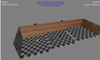I initially prepared a Minecraft-like concept game where a player can move in 3 dimensions and create "boxes". However my students were quite happy to control a player in two dimension (sliding around the chessboard) and later apply a jump functionality to the player. In the end, we made some kind of 3D - Platform game where a player must collect red balls and try to evade an triangular enemy.
